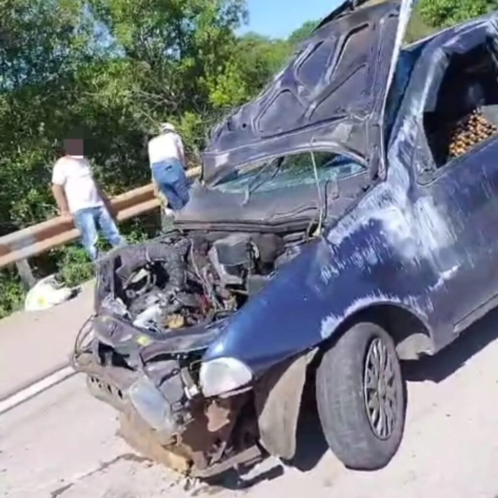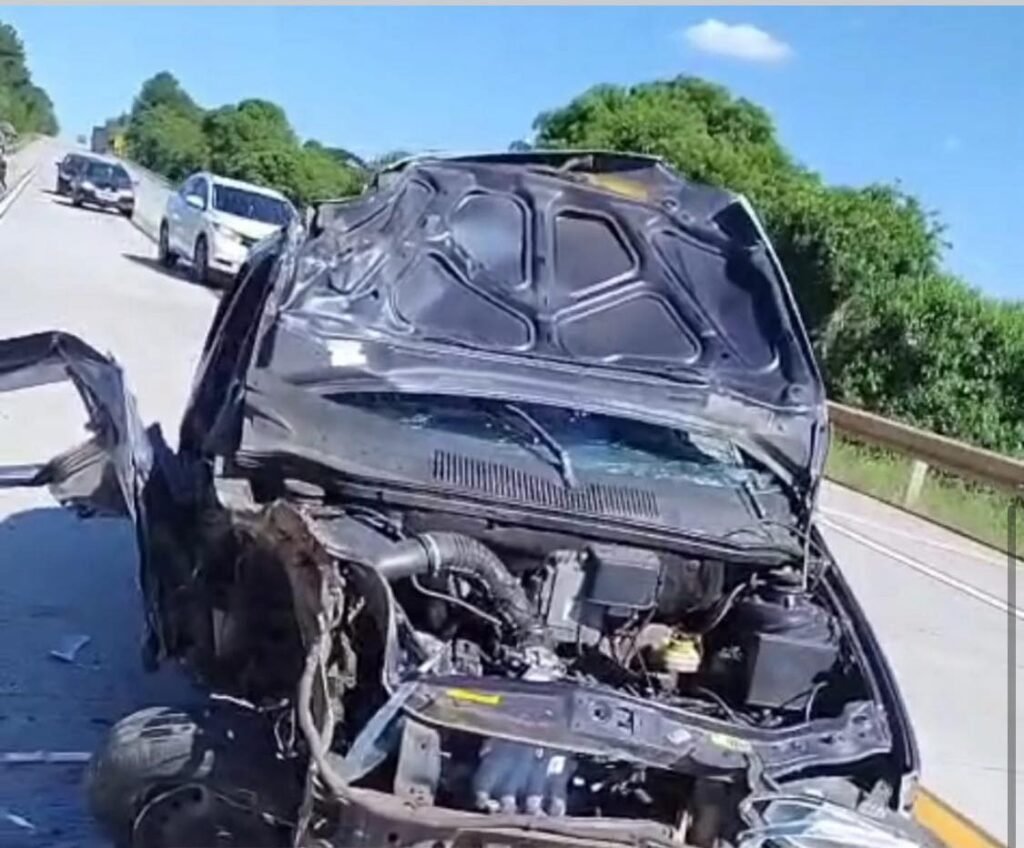O carro atingiu o guard-rail, além disso retornou para a pista após o impacto.